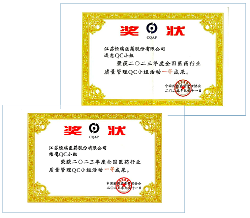 AG亚游医药荣获2023年度全国医药行业质量管理QC小组活动一等奖
